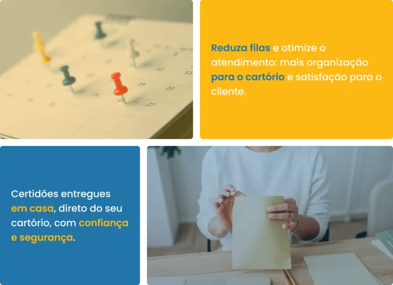 Transforme o atendimento do seu cartório com agendamentos e pedidos online, simplificando processos e proporcionando praticidade para seus usuários.